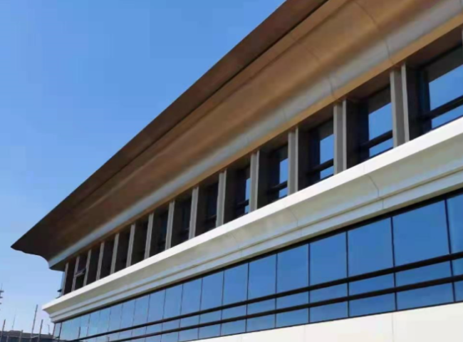 Frame glass, aluminum plate curtain wall; stone curtain wall; imitation copper cornice and imit-ation copper pillar