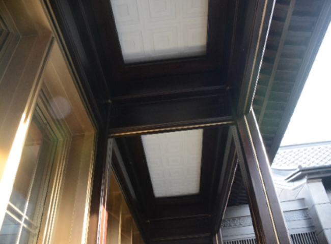 铜型材玻璃幕墙、进口家具式柚木木作、铜型材檐口造型、铜门